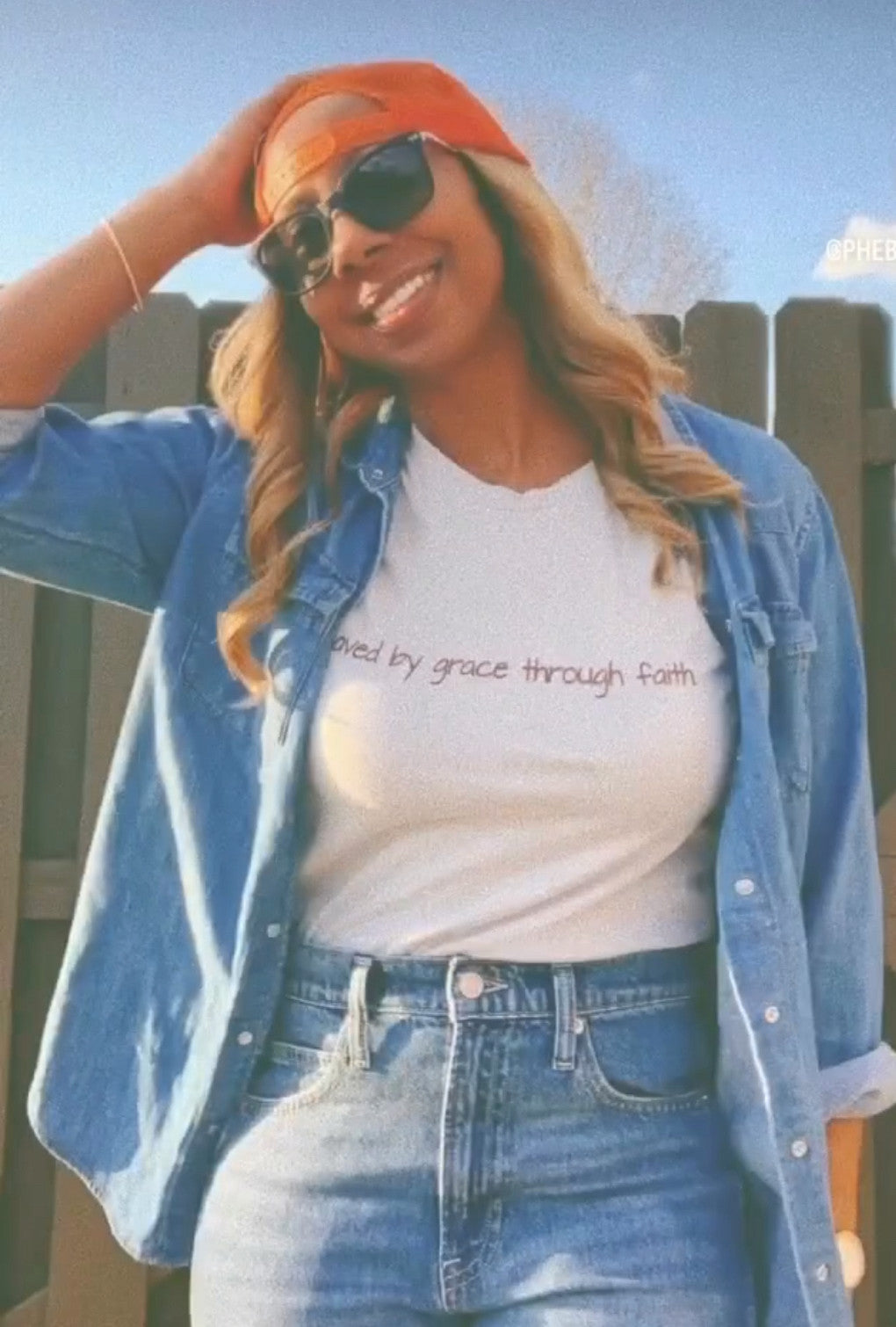 The "Saved By Grace Through Faith" t-shirt is scripture based, taken from Ephesians 2:8 to remind us of God's powerful saving grace. It opens the door to talk about God's grace, goodness, and love with others. This design is simple and clean - it's classic! It's super comfy and can easily become one of your favorite t-shirts. :)